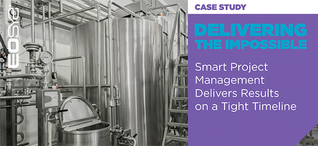 A global food and beverage manufacturer partnered with EOSYS to design, commission, and launch process controls for a new 115,000 square foot facility. By leveraging agile methodology and meticulous preplanning, EOSYS modernized over 50 batching process phases and built 300 control panels.